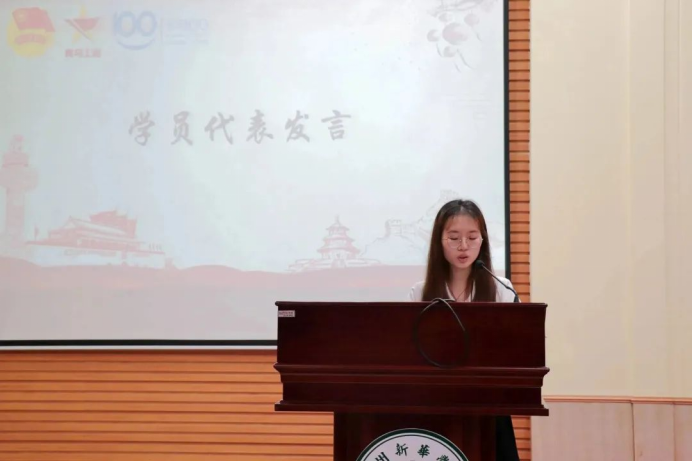 随后,“青马”学员代表蔡丹徐同学上台与大家分享了她加入培训班的心得,它既是一份荣耀,也是一份责任,要不断深入学习马克思主义,听党指挥跟党走,才能更好地推进中华民族的伟大复兴。同时,代表全体学员郑重承诺,将严格遵守青马班的规章制度,并不断提升个人的能力,努力成为一名真正的青年马克思主义者。