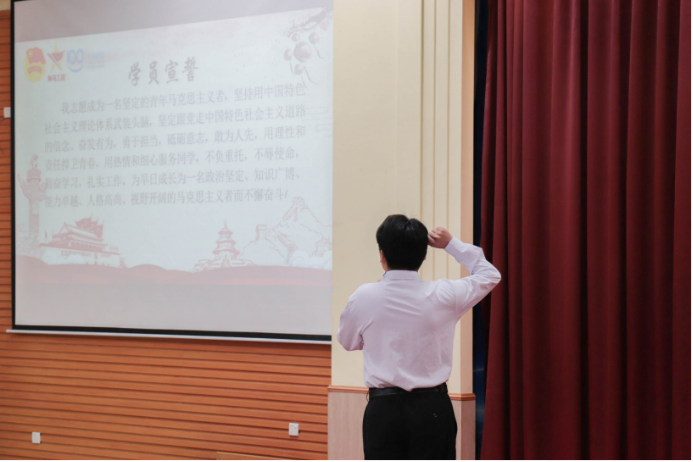 最后,学员代表李均文同学带领全体学员进行学员宣誓。青年强则国强,青年是社会最鲜活的血液,是时代最激昂的力量,是崭新篇章的书写者。