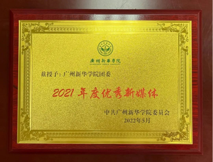 (图二:校团委微信公众号荣获“2021年度优秀新媒体”奖项)