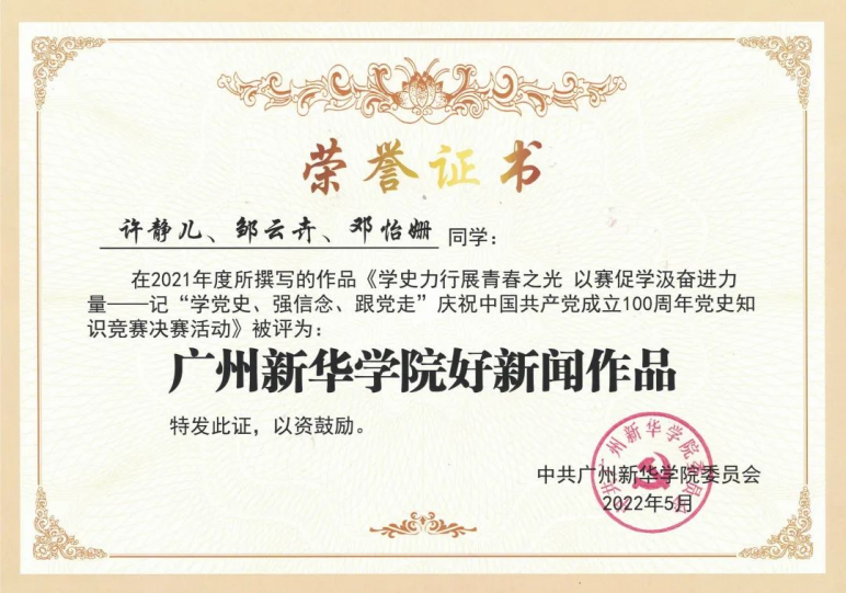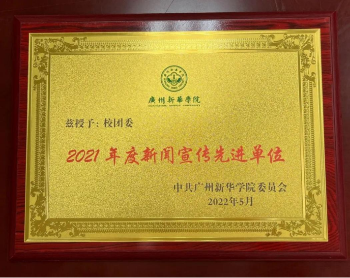 (图一:校团委荣获“2021年度新闻宣传先进单位”奖项)