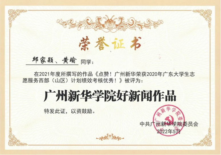 《点赞!广州新华荣获2020年广东大学生志愿服务西部(山区)计划绩效考核优秀!》
