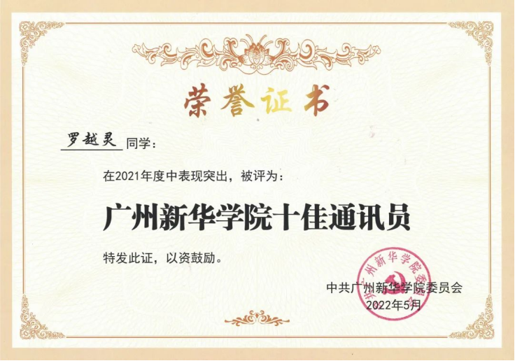 (图八:罗越灵同学获得