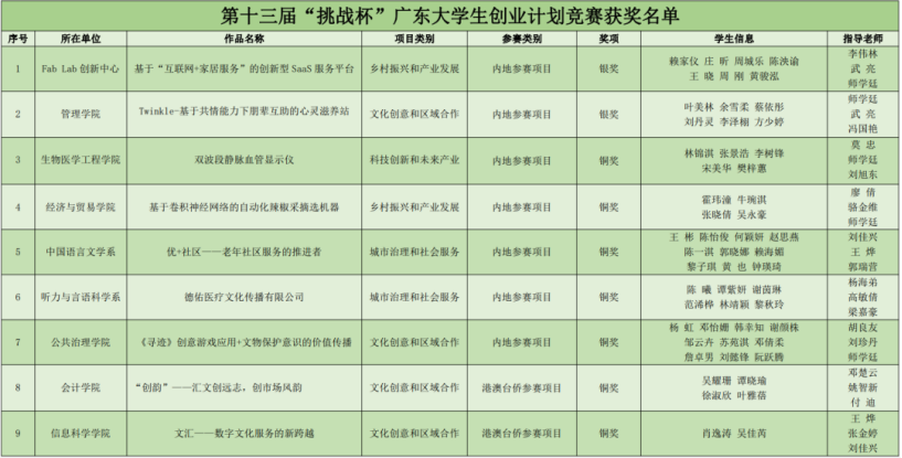 图一:我校在第十三届“挑战杯”广东大学生创业计划竞赛中的获奖情况