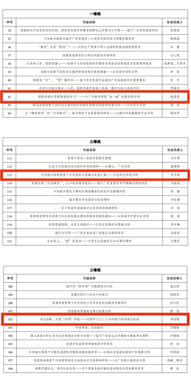 近日获悉,我校在广东大学生社会治理调研大赛中取得省级一等奖1项、三等奖2项的佳绩。