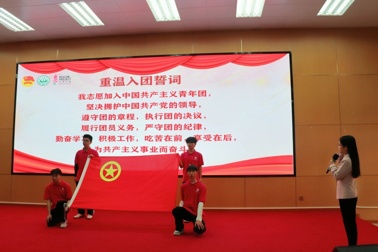 接下来,在校团委副书记黄琳老师的带领下,全体学员铿锵有力,慷慨激昂地重温了入团誓词。在鲜艳明亮的团旗下,誓言如洪钟回荡,此刻,青年的信仰与责任在心中深深扎根。