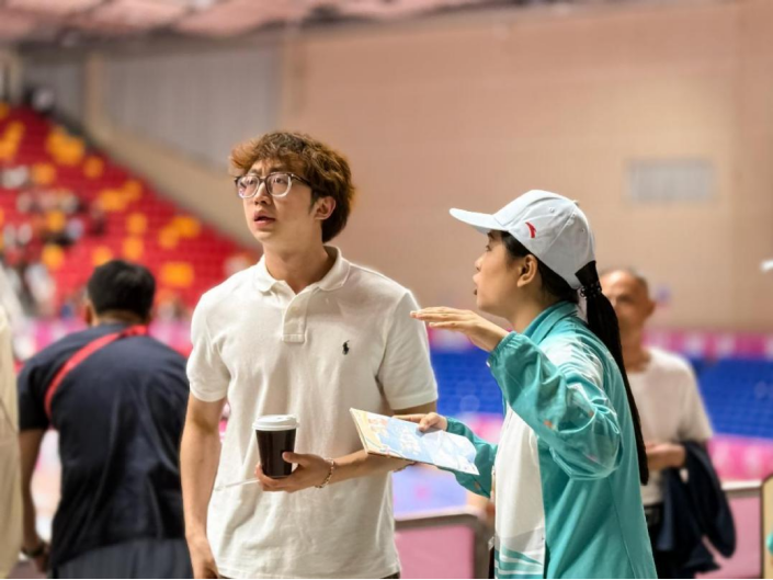 面对密集的入场人流,观众引导协调助理展现出出色协调能力。清晰的指引手势搭配温暖的服务用语,结合精准的客流疏导,让每位观众都能快速找到观赛位置。服务过程中,新华“小海豚”不仅提供专业指引,还会与观众进行轻松互动,让整个观赛过程充满欢声笑语。“志愿者就像赛场上的活地图”,带着孩子的家长开心地分享感受,这一评价正是新华“小海豚”青春风采的生动写照。