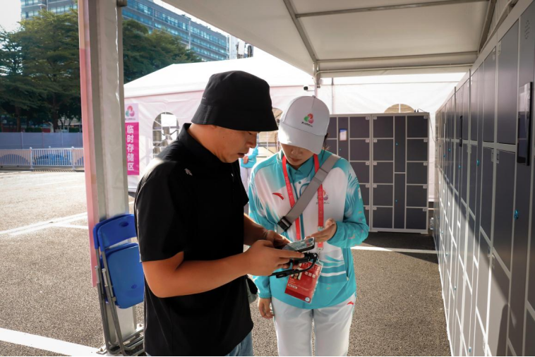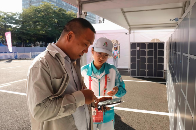 物品寄存处前,交通调度助理的耐心服务赢得观众认可。“寄存服务让人特别安心”,一位观众在存放物品后如此表示。交通调度助理协助观众存放物品时,仔细核对每件物品信息,确保寄存安全无误,让观众能无后顾之忧享受比赛乐趣,充分感受体育魅力。