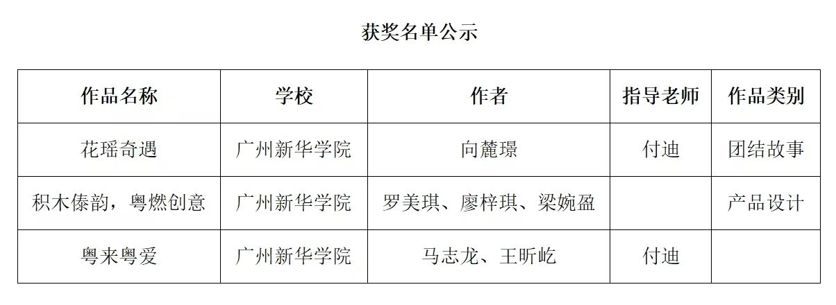 近日,广东省教育厅公布了关于《2025年“爱在广东”民族团结进步教育活动结果的通知》(粤教思函〔2025〕29号),经组织专家评审,我校学生参赛作品《花瑶奇遇》荣获一等奖,《积木傣韵,粤燃创意》荣获二等奖,《粤来粤爱》荣获三等奖!
