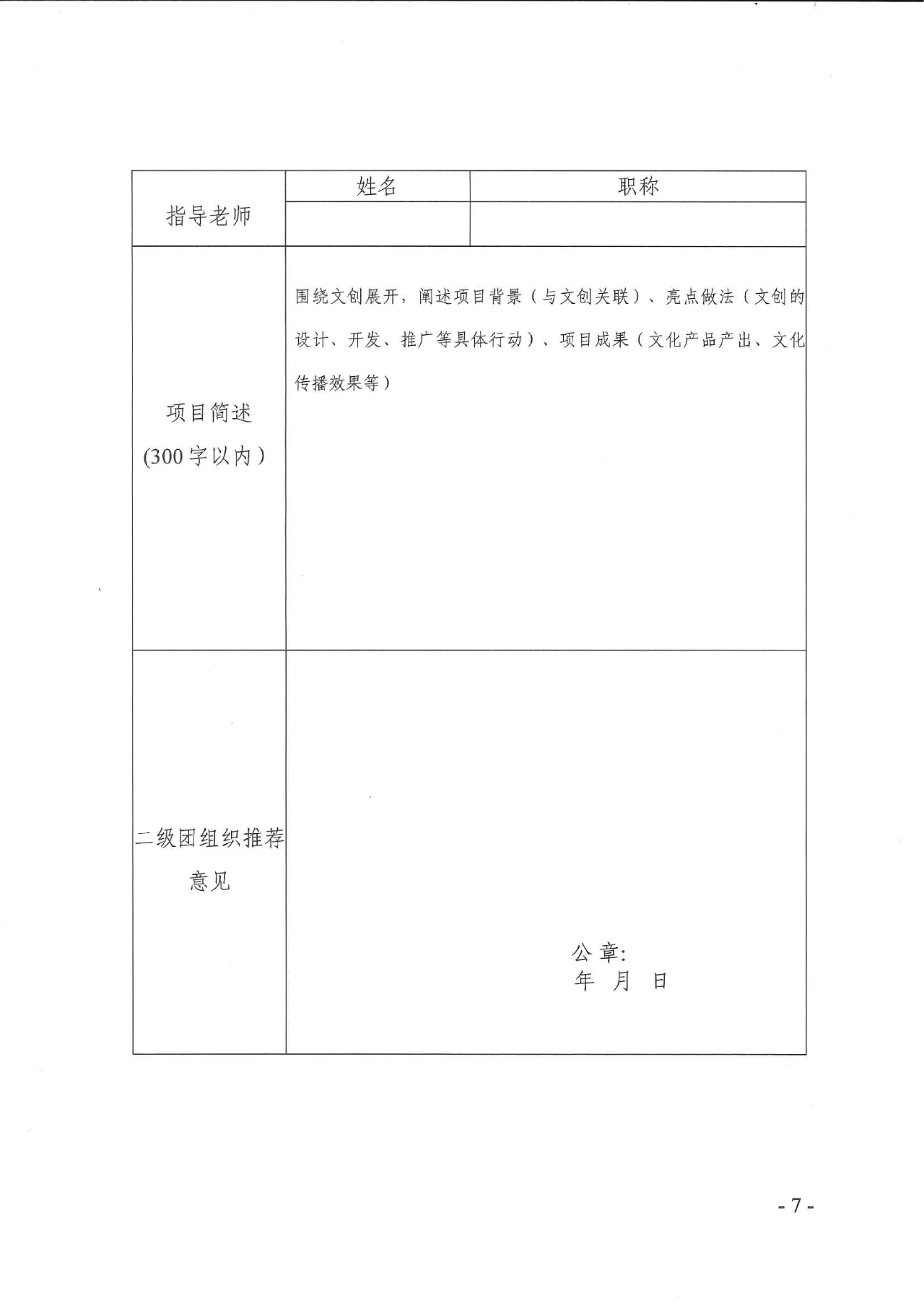 (二)队伍需提交报名登记表和20页以内项目介绍PPT(主要介绍项目背景、突出亮点做法和项目成效),同时按照项目类型提交以下材料。