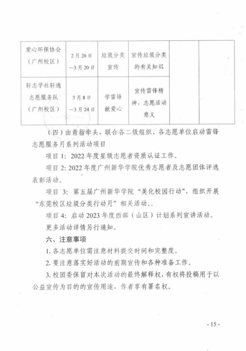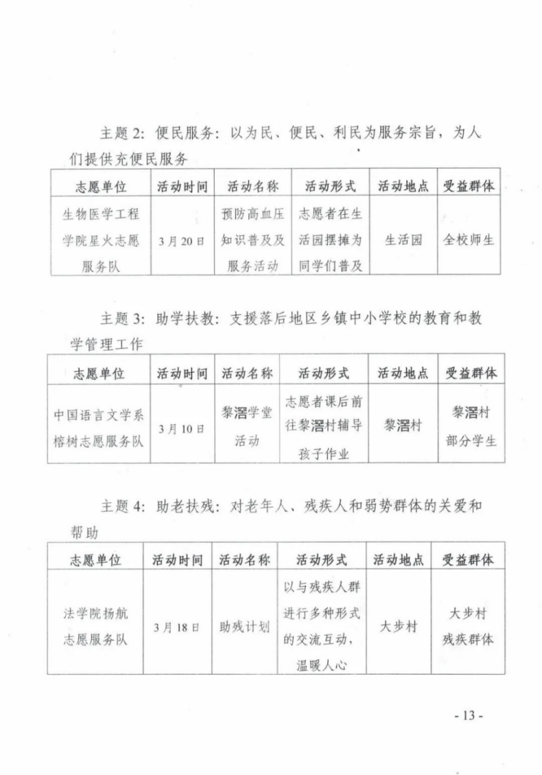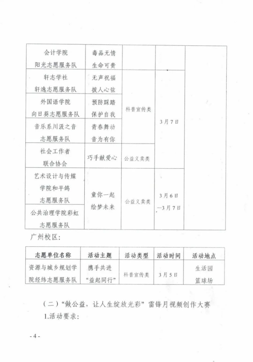 (四)由青指牵头,联合各二级组织、各志愿单位启动雷锋志愿服务月系列活动项目