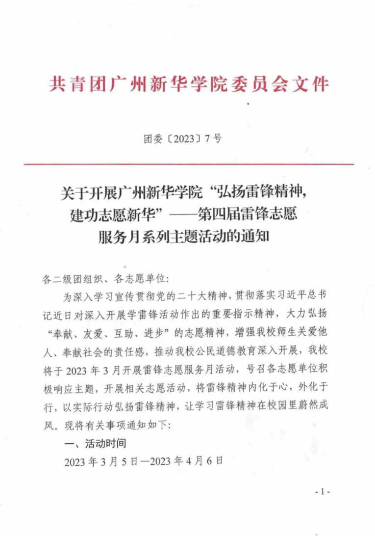 为深入学习宣传贯彻党的二十大精神,贯彻落实习近平总书记近日对深入开展学雷锋活动作出的重要指示精神,大力弘扬“奉献、友爱、互助、进步”的志愿精神,增强我校师生关爱他人、奉献社会的责任感,推动我校公民道德教育深入开展,我校将于2023年3月开展雷锋志愿服务月活动,号召各志愿单位积极响应主题,开展相关志愿活动,将雷锋精神内化于心,外化于行,以实际行动弘扬雷锋精神,让学习雷锋精神在校园里蔚然成风。现将有关事项通知如下: