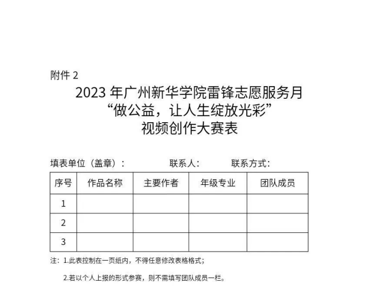 附件:1. 2023年英国上市公司365雷锋志愿服务月“做公益,让人生绽放光彩”视频创作大赛报名表