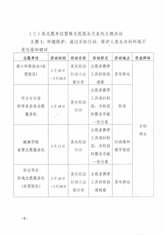(三)各志愿单位雷锋志愿服务月系列主题活动