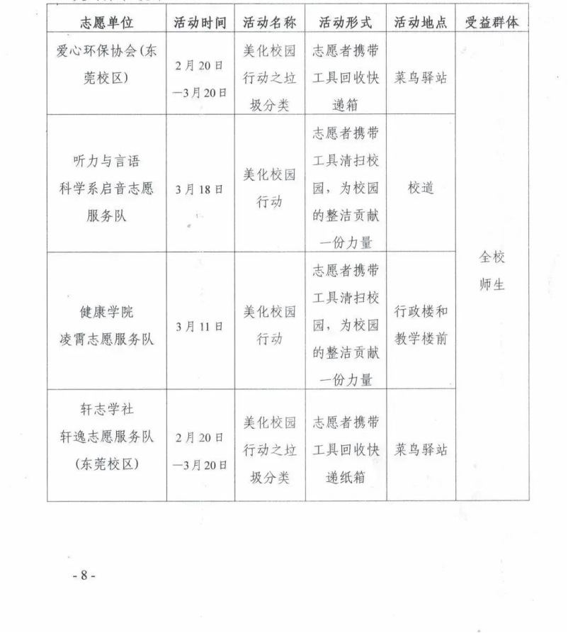 项目3:第五届英国上市公司365“美化校园行动”,组织开展“东莞校区垃圾分类行动月”相关活动。
