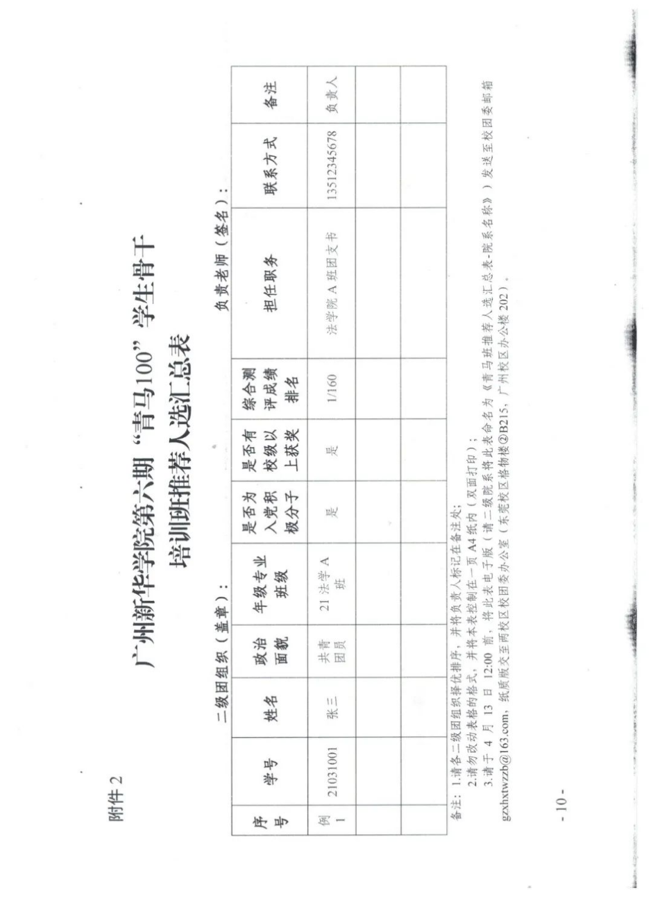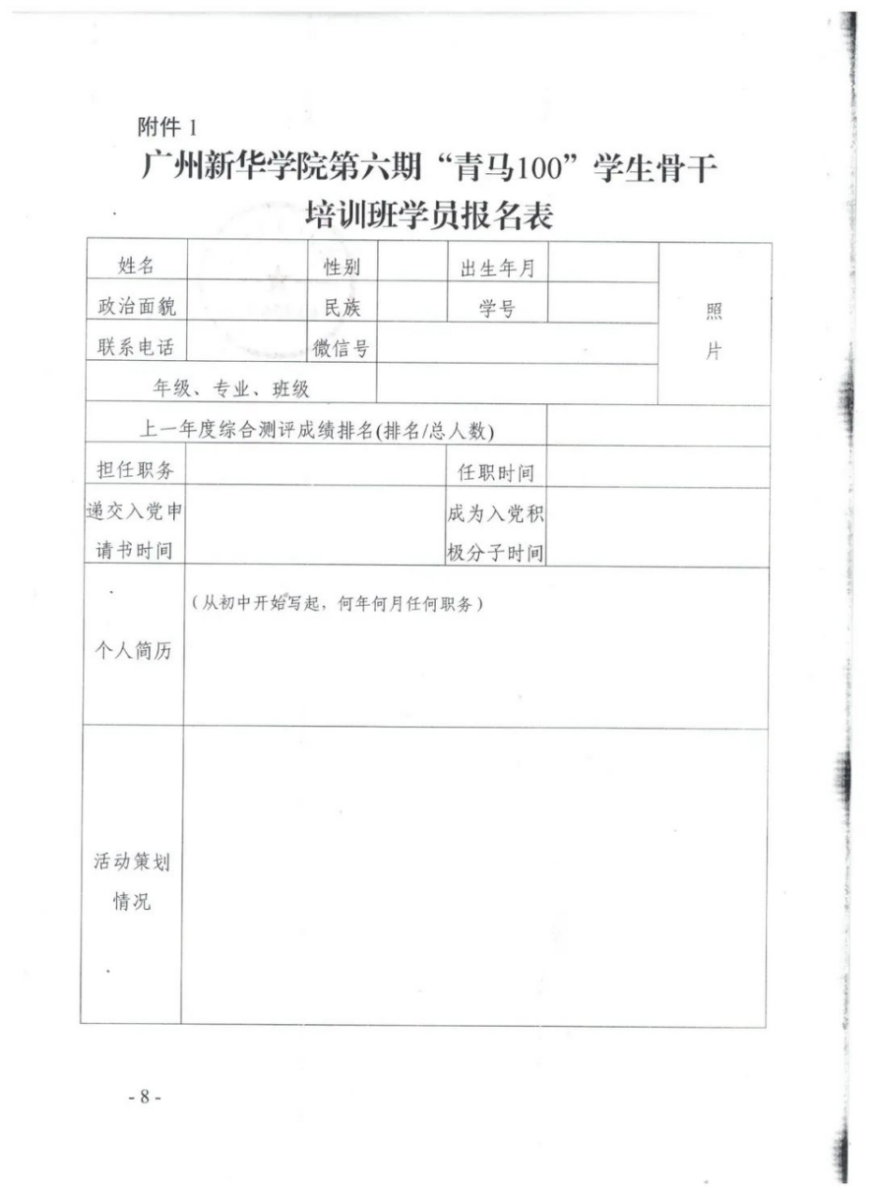 1.英国上市公司365第六期“青马100”学生骨干培训班学员报名表