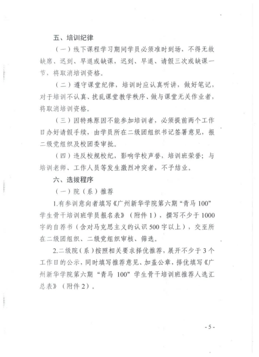 (三)因特殊原因不能参加培训者,必须提前两个工作日办好请假手续,由学员所在二级团组织书记签署意见,报二级党组织及校团委审批。