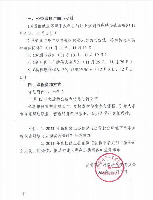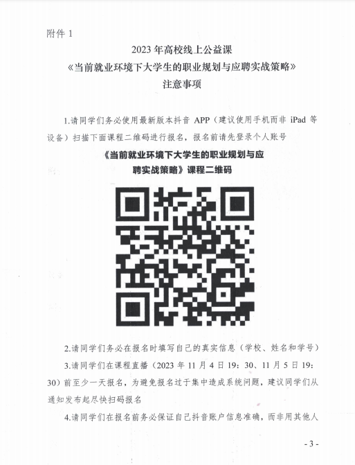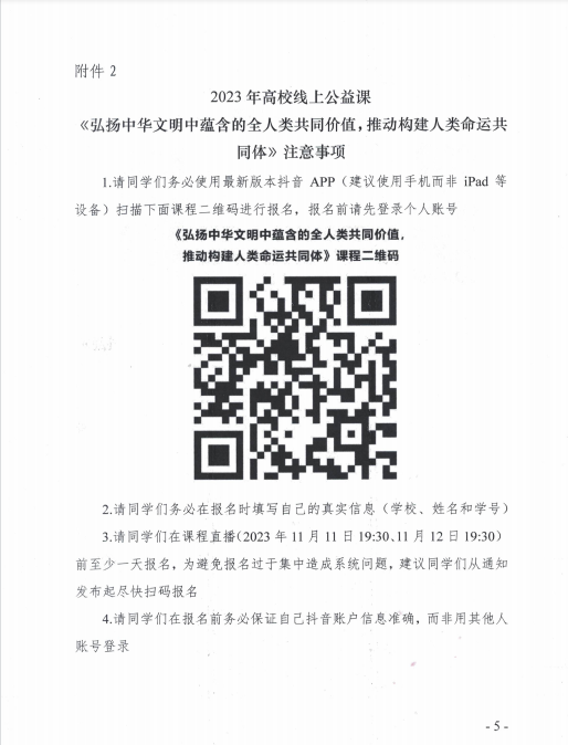 附件:1. 2023年高校线上公益课《当前就业环境下大学生的职业规划与应聘实战策略》注意事项2. 2023年高校线上公益课《弘扬中华文明中蕴含的全人类共同价值,推动构建人类命运共同体》注意事项