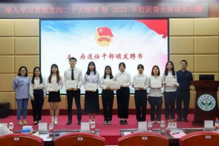 为深入学习领会党的二十大精神,用新的伟大奋斗创造新的伟业,我校团委于2023年3月18日上午9:00在广州校区教学楼D101召开“深入学习贯彻党的二十大精神暨2023年校团委全体成员大会”。出席本次大会的有校团委书记代亮同志、副书记黄琳同志、副书记陈忱同志、实践部部长刘佳兴同志、团体部副部长李丹琳同志,校团委各部门干部代表以及全体新生干部。大会由杨丽旸、武秦豪同学主持。