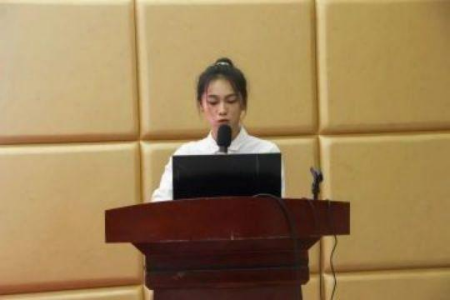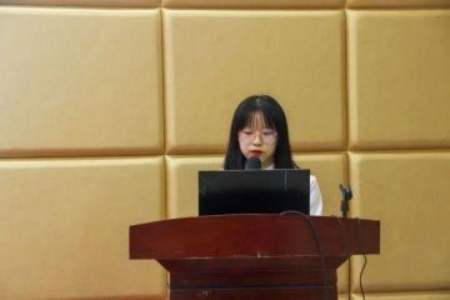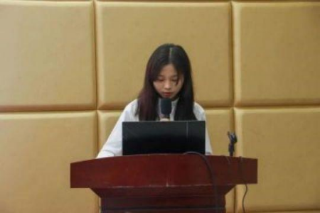 接下来,来自实践部2022级新生代表李春晖同学上台发言,她表示非常荣幸能够加入校团委这个大家庭,在这个大家庭里学到了许多有用的知识和技能,同时表达了自己作为新干部,会积极迎接新挑战,发出了不忘初心、敢于担当、敢于奉献的庄重宣言。