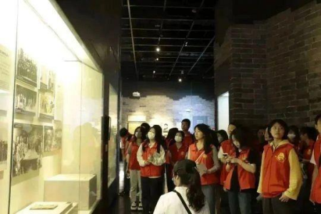 (图片一:校团委干部准备进入纪念馆)