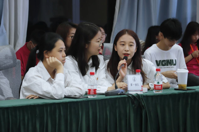 第一轮初赛赛段由“必答题”和“抢答题”两个环节组成,最终取分数排名前四的四支队伍进入决赛争夺冠军头衔。在必答题环节,各队队员从容应对,沉着答题,在这一环节,各队都取得了不错的成绩。