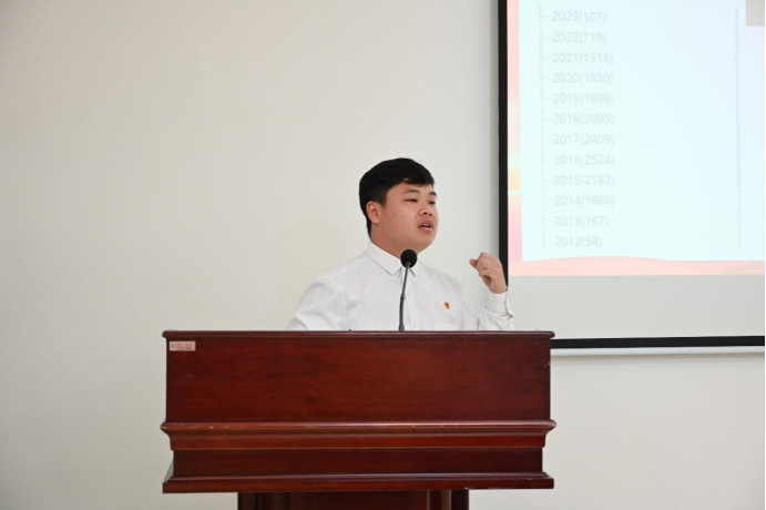 而后,主讲人罗智勇同学从组织架构分享、骨干队伍建设、品牌项目打造、校地合作经验四个方面开始分享。组织架构方面,罗智勇同学简单讲解了队长团、活动部、项目部、宣传部、联勤部几个部门的职能;骨干队伍建设方面,罗智勇同学分别给校青指和各院系志愿队给出了几点建议,培养志愿队伍;品牌项目打造方面,罗智勇同学从加强品牌项目申报书撰写、落实志愿服务品牌项目几个方面进行了讲解;校地合作经验方面,罗智勇同学从加强与团镇委的合作、加强与镇志协的合作、加强与政府职能部门的合作等进行分享。