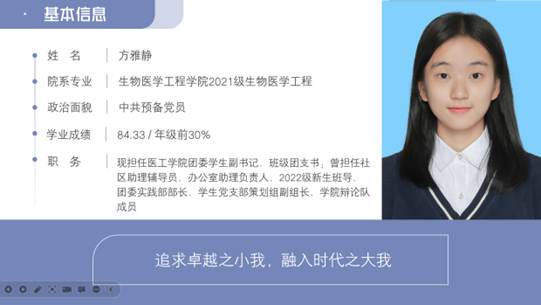 这群青年们对学术科研怀揣着赤诚之心,为科学研究贡献青年力量,勇攀学术之巅和科技高峰,心无旁骛投身于学术科研当中,这群青年们勇于攻坚克难,不惧挑战,追求卓越,青衿之志,履践致远。他们分别是:黄佳怡、谭颖昕、郑东荣。