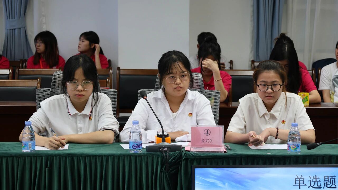 出席本次竞赛的嘉宾有校团委书记代亮老师、校团委办公室指导老师刘立萍老师、校团委宣传部指导老师郑潇老师以及来自校级团学组织部门的9支队伍。竞赛现场,同学们积极参与,每一次精准无误的回答,都是对党团知识的深刻理解与扎实掌握,体现出团学干部对党的忠诚,诉说着对中国共产党及共青团的深厚真挚情感。