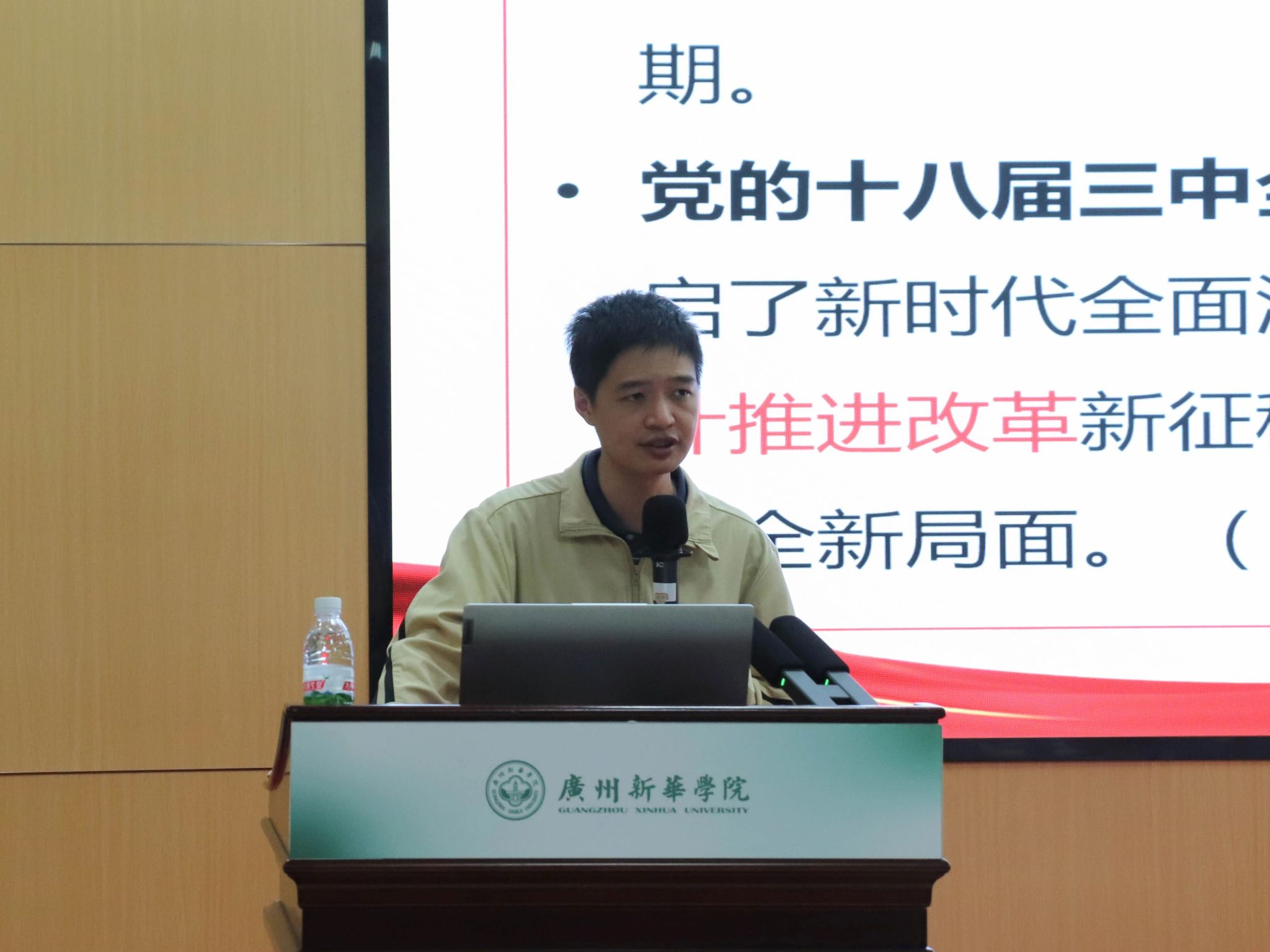 马克思主义学院专任教师、团属思政班主任邢立宇老师开展《认真学习贯彻党的二十届三中全会精神》主题讲座,带领同学们深入了解和学习贯彻党的二十届三中全会精神,进一步掌握全面深化改革的重要意义、总体要求与重要部署,让干事们深刻体会到其在推进中国式现代化中的关键作用和重要地位。同时,也呼吁广大干事们主动担当、砥砺奋发,将青春奋斗融入新时代新征程的伟大事业中!