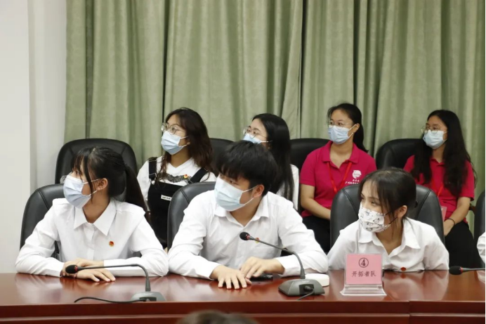 出席本次比赛的嘉宾有校团委书记代亮老师,校团委副书记陈忱老师,校团委办公室夏仲老师,校团委实践部刘佳兴老师以及校团委团体部李丹琳老师。参与此次比赛的还有来自团学组织部门的10支队伍共30名选手。他们分别是来自艺术团的“搞完一起开派队”、来自宣传部的“争取全队”、来自实践部双创的“越创越勇队”、来自组织部的“开拓者队”、来自校学生会的“比完赛想睡大觉队”、来自广播台的“答的都队”、来自实践部社实的“从容应对队”、来自办公室的“团团队”、来自实践部青指的“啊对对队”以及来自学社联的“爱会消失对不队”。此外,本次比赛还设有场内援助机会,每队在初赛和决赛中分别仅有1次场内求助的机会,求助对象需为已报名的场内援助成员,参赛选手可在不会作答时选择使用场内援助。选手们昂扬向上的比赛风采体现了团干青年奋进新征程、共画同心圆的高昂精神,彰显了奋发进取的良好风貌。