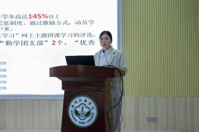 (图十二:公共治理学院团委黄惠玲同志述职)