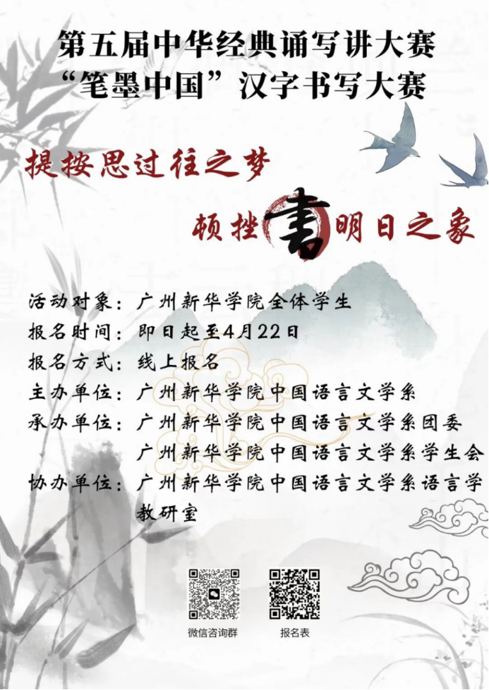为积极主动落实国家关于加强汉字书写规范、开展汉字书法教育的要求,以青年学子之笔墨传承中华优秀传统文化;加强我校学生对规范书写汉字、传承中华优秀传统文化的关注度,引起校内“知规范,好书写,乐书写”的风潮,提高学生的汉字书写水平;加强我校学生的爱国热情和人文素养,进一步继承并弘扬我国源远优美的汉字书法文化与艺术。中文系团委及中文系学生会将共同承办第五届中华经典诵写讲大赛“笔墨中国”汉字书写大赛,希望同学们积极参与。