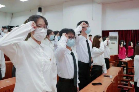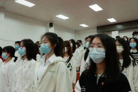 紧接着,全体团员重温入团誓词,铿锵有力的话语,振奋人心的语调,这句句誓词不断诉说着代代共青团员肩上的使命与担当,激起代代青年人的热血。