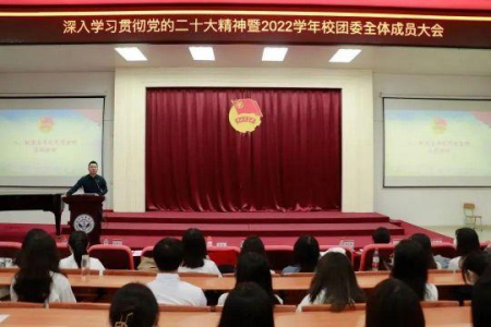 凝心聚力擘画复兴新蓝图,团结奋进创造历史新伟业。中国共产党自建立以来,在百年的艰苦奋斗中坚定践行伟大的建党精神。正值党的二十大胜利召开之际,我校团委于2022年11月6日上午9:00在东莞校区定静①F203召开“不忘初心,牢记使命,砥砺奋进,勇毅前行:学习贯彻党的二十届一中全会精神暨2022年全体成员大会”。出席本次大会的有校团委书记代亮同志、副书记陈忱同志、实践部部长刘佳兴同志,团体部副部长李丹琳同志,艺术团、学社联指导老师洪宇涵同志,校团委各部门干部代表以及全体新生干部。大会由陈舒舒、方楚欣同学主持。