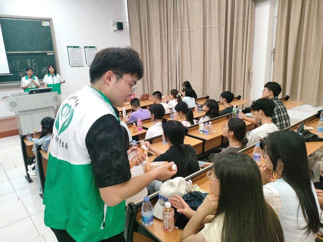 在三大部门招新宣讲热烈进行的同时,现场还涌动着一股暖心的小插曲,康复医学系学生会以及梦之翼志愿服务队的成员们纷纷化身“暖心使者”,手捧装满零食的箱子与饮料,穿梭在新生之间,将一份份甜蜜与关怀送到大家手中。