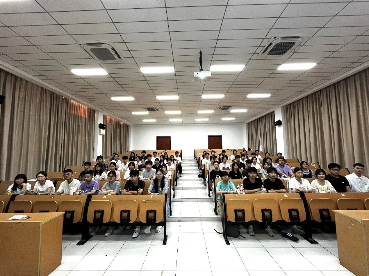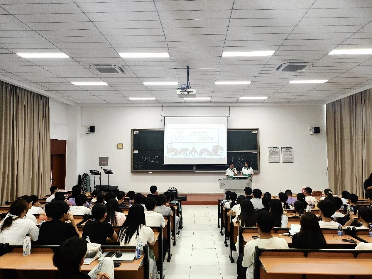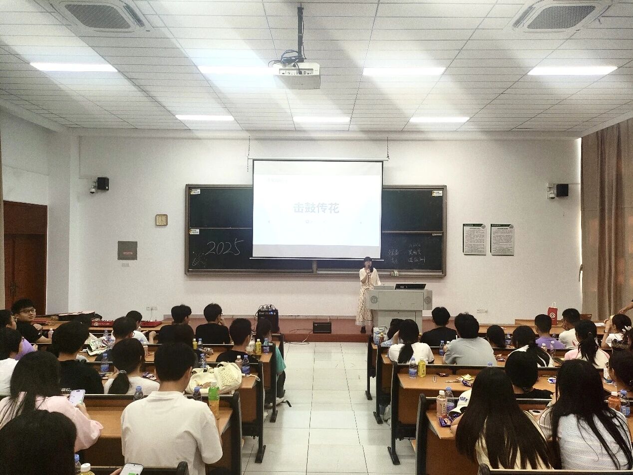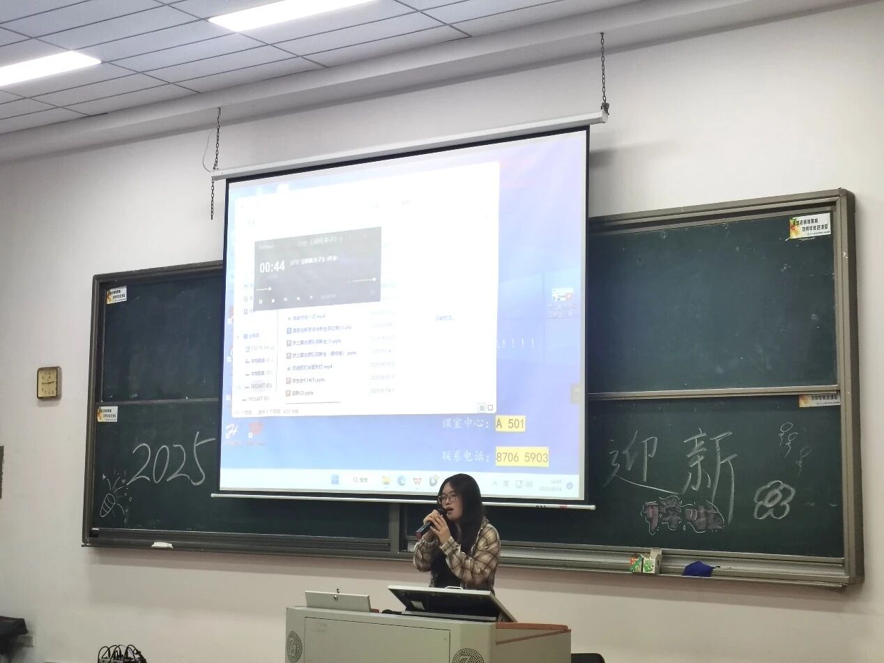 茶话会的第三个部分是大学解惑,首先由来自2023级的两位班导--胡娅婷与张嘉豪先后做自我介绍,为新生们送上了第一份“校园指引”。接着主讲胡娅婷同学就“班委介绍”、“奖学金介绍”、“勤工助学”以及“课程学习”等模块详细地进行介绍,最后由2022级李佳玲师姐为新生们进行了经验分享。师兄师姐们真诚的解答与分享像一盏盏明灯,照亮了新生们的大学方向,不少同学举手提问,现场氛围既热烈又温馨。