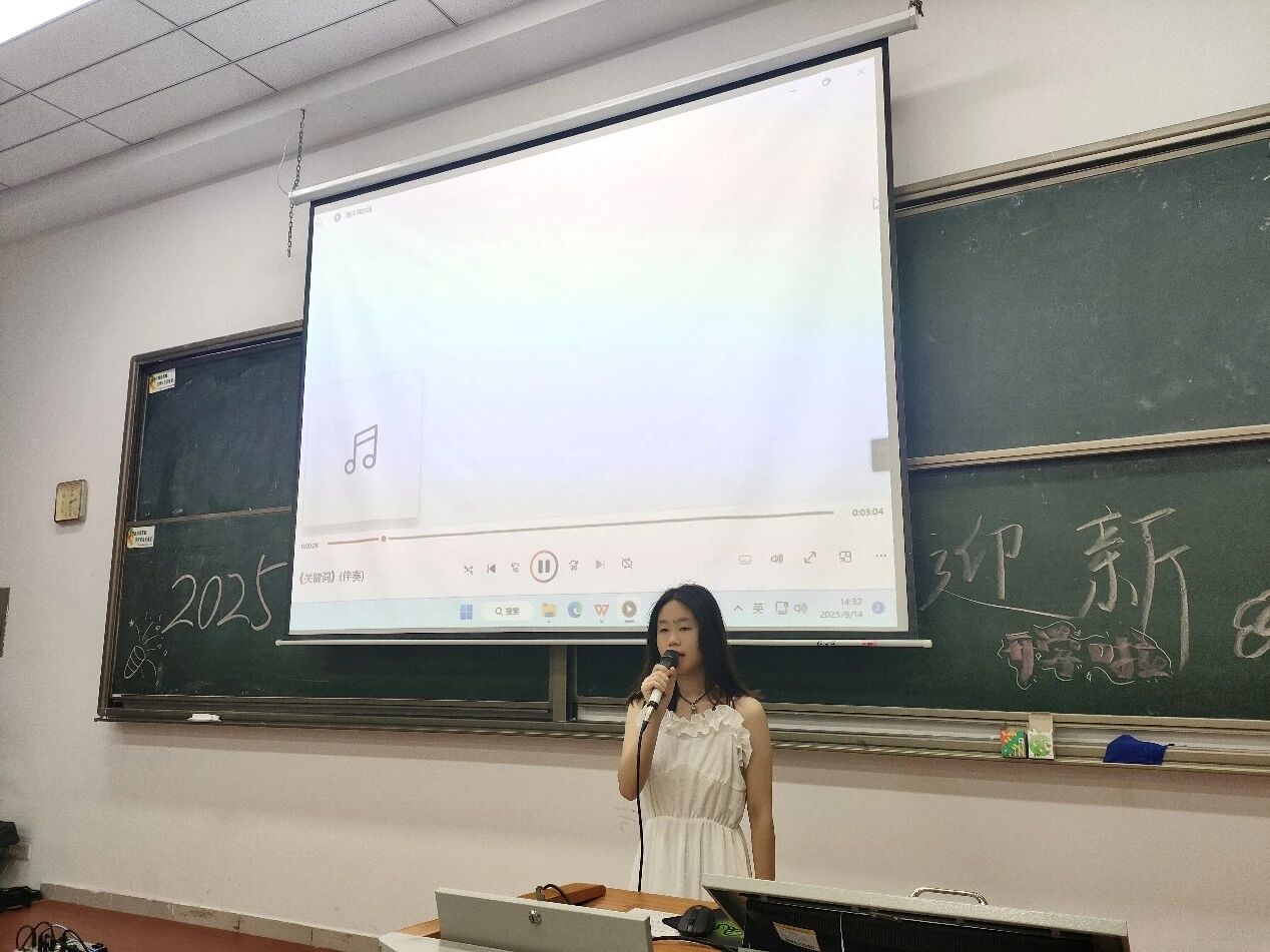 第二个节目是由2023级张婷同学带来的歌声盛宴《关键词》,伴随着轻柔的伴奏缓缓响起,张婷同学拿起话筒,清澈的声音将所有人的目光都拉到了舞台上,当她唱到“有一种踏实,是你心中有我名字”时,温柔的旋律与真挚的歌词交织,台下不少同学轻轻跟着哼唱。