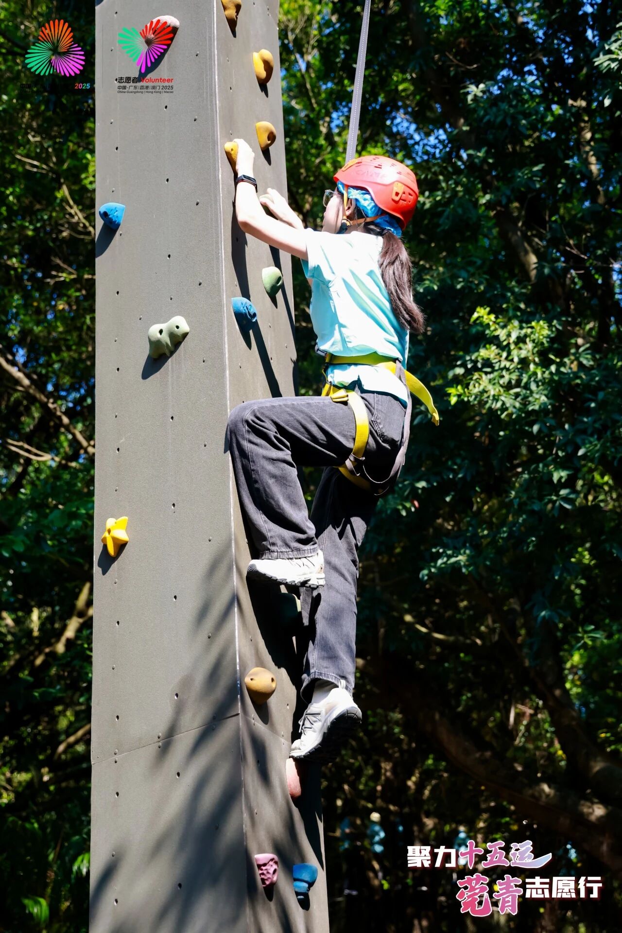 很荣幸作为志愿者代表,参与出征仪式与团建活动。出征仪式上的氛围极大地鼓舞了士气,让我更有信心以饱满热情和专业能力投入后续的志愿服务。而团建中的破冰游戏、丛林越野、攀岩等项目,则让我在轻松愉悦的环境下结识了更多志愿者伙伴并快速融入赛会志愿服务大家庭。我深知志愿服务从不是“一个人的奔跑”,而是一群人的并肩同行。面对即将到来的十五运会和残特奥会,我会继续秉持志愿精神,在每一处服务细节里传递真诚,和大家一起把赛会志愿服务做得更好!