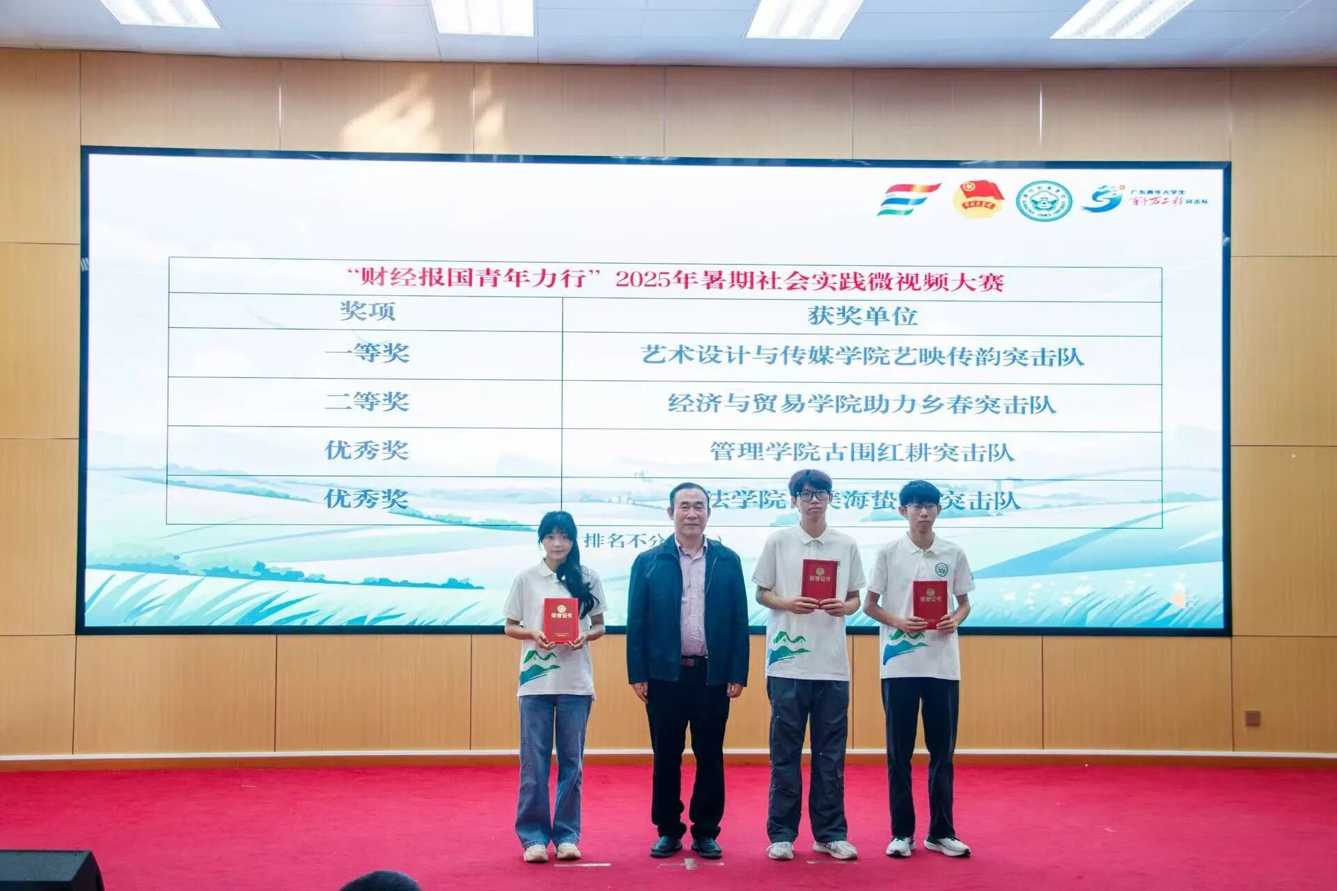 图11:学校副校长李毅为“财经报国青年力行”2025年暑期社会实践微视频大赛获奖代表颁奖