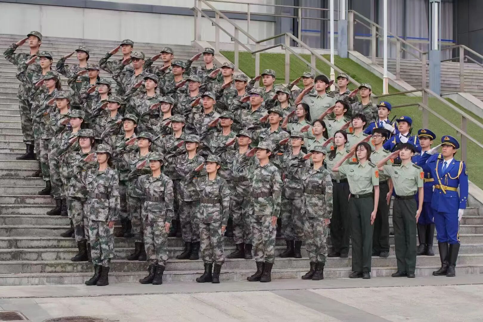 图二:王静韵参加国旗护卫队授衔升旗仪式(第五排右三)