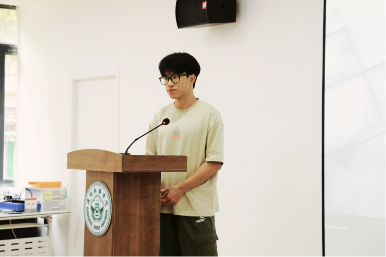 活动第一项议程,由主持人介绍本次复审会评选规则。本次评选活动设置线上、线下两类展示渠道,由校团委组建教师评审团,依据27位候选人的事迹展示情况开展综合评分。评选流程为:候选人进行5分钟PPT演讲展示,随后进入2分钟提问答辩环节,答辩结束后由评委现场打分,最终从27位候选人中择优确定15位晋级终审环节。