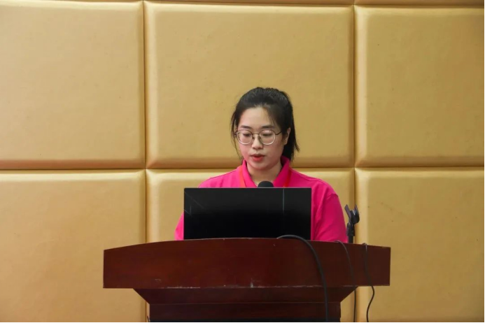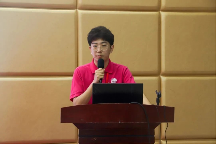 接下来,来自实践部2022级新生代表李春晖同学上台发言,她表示非常荣幸能够加入校团委这个大家庭,在这个大家庭里学到了许多有用的知识和技能,同时表达了自己作为新干部,会积极迎接新挑战,发出了不忘初心、敢于担当、敢于奉献的庄重宣言。